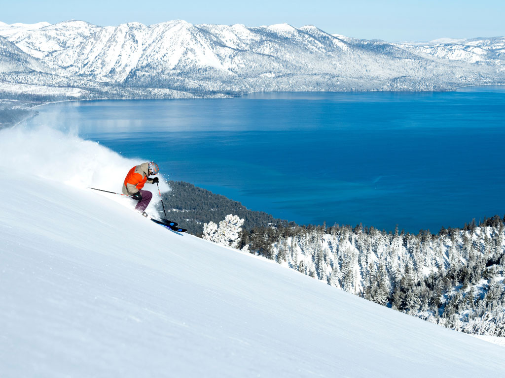 Scene: The glistening lake lies less than three and a half hours from San Francisco in the lush Sierra Nevada Mountains. Snowy peaks towering over the lake are home to 14 ski areas. Heavenly Mountain Resort on the south shore is the largest and most luxurious. Unlike any other ski destination, Tahoe doubles as a winter sports hot spot and a top casino destination. The base of Heavenly is in California, but a large part of the terrain lies across the state line in Nevada, so if you want to hit the slots after the slopes, this is the place.